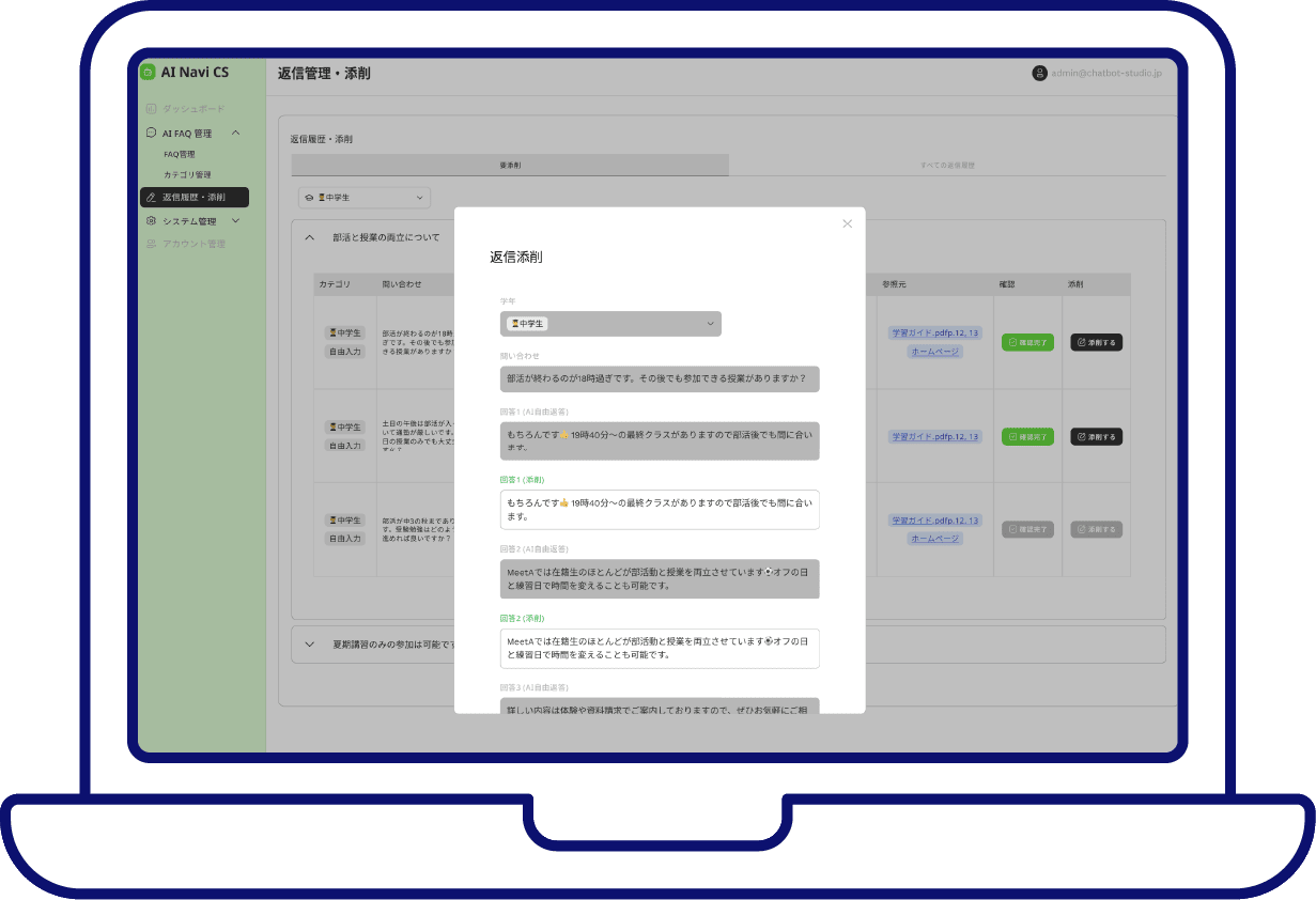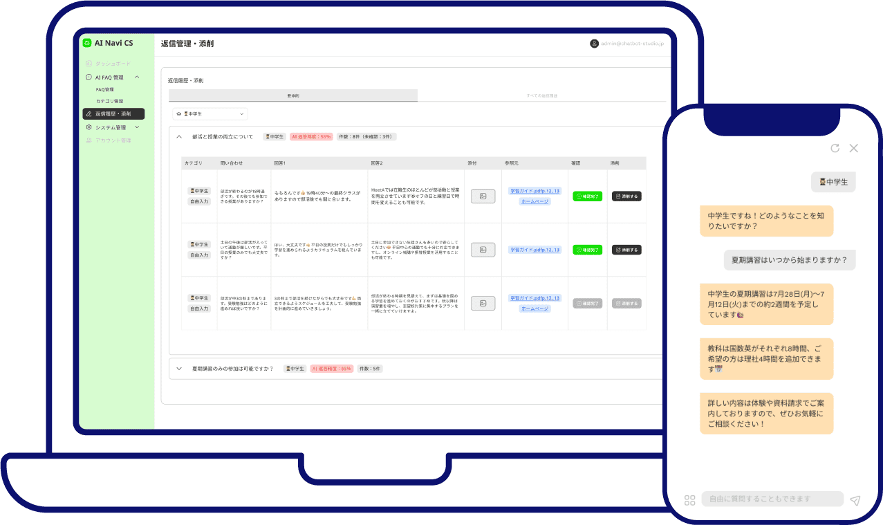 マニュアルやHP、よくある質問をAIに学習させることで、